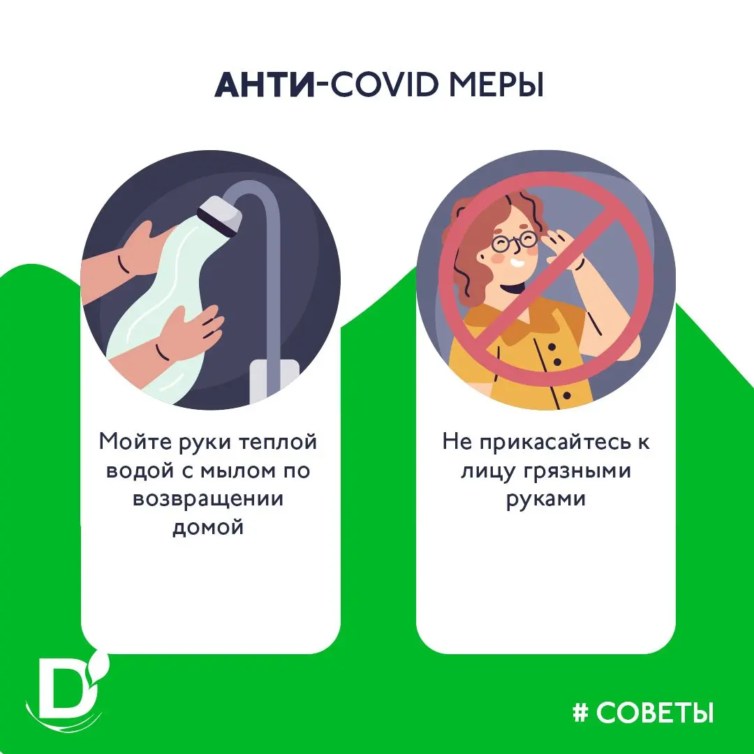 • Не прикасайтесь к лицу грязными руками. Особенно к глазам, носу, рту. Именно через слизистые вирус проникает в организм.