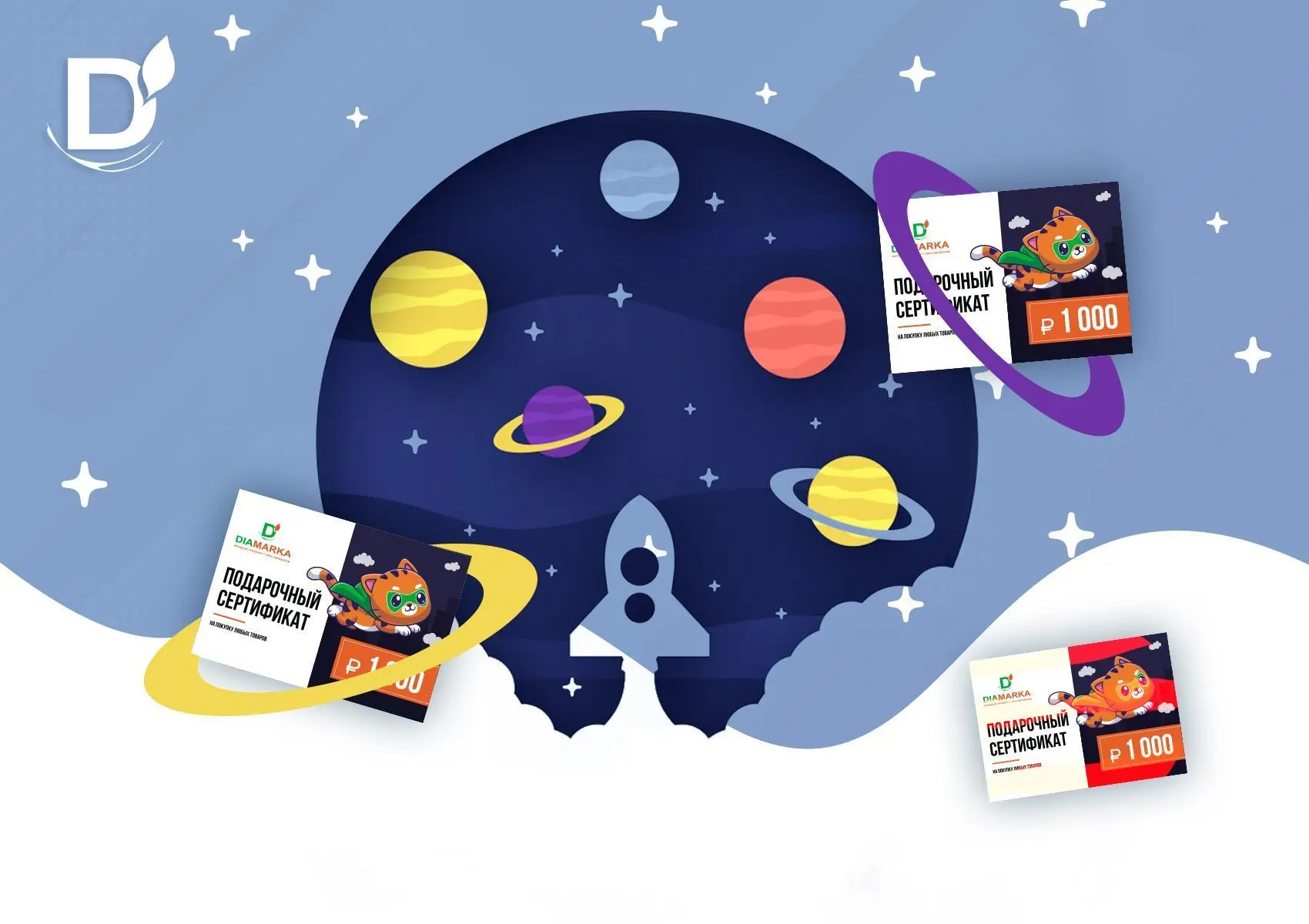 Дарим 3 сертификата по 1000 рублей на покупки в diamarka.com