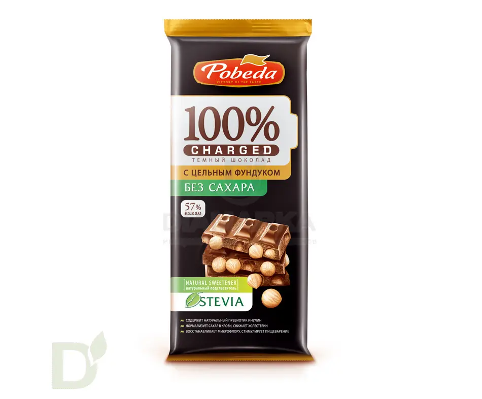 Шоколад Победа Чаржед Темный с фундуком без сахара, 90г.