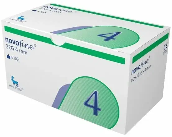 Иглы НовоФайн / NovoFine 32G для шприц-ручек, длина 4 мм, 100 шт.